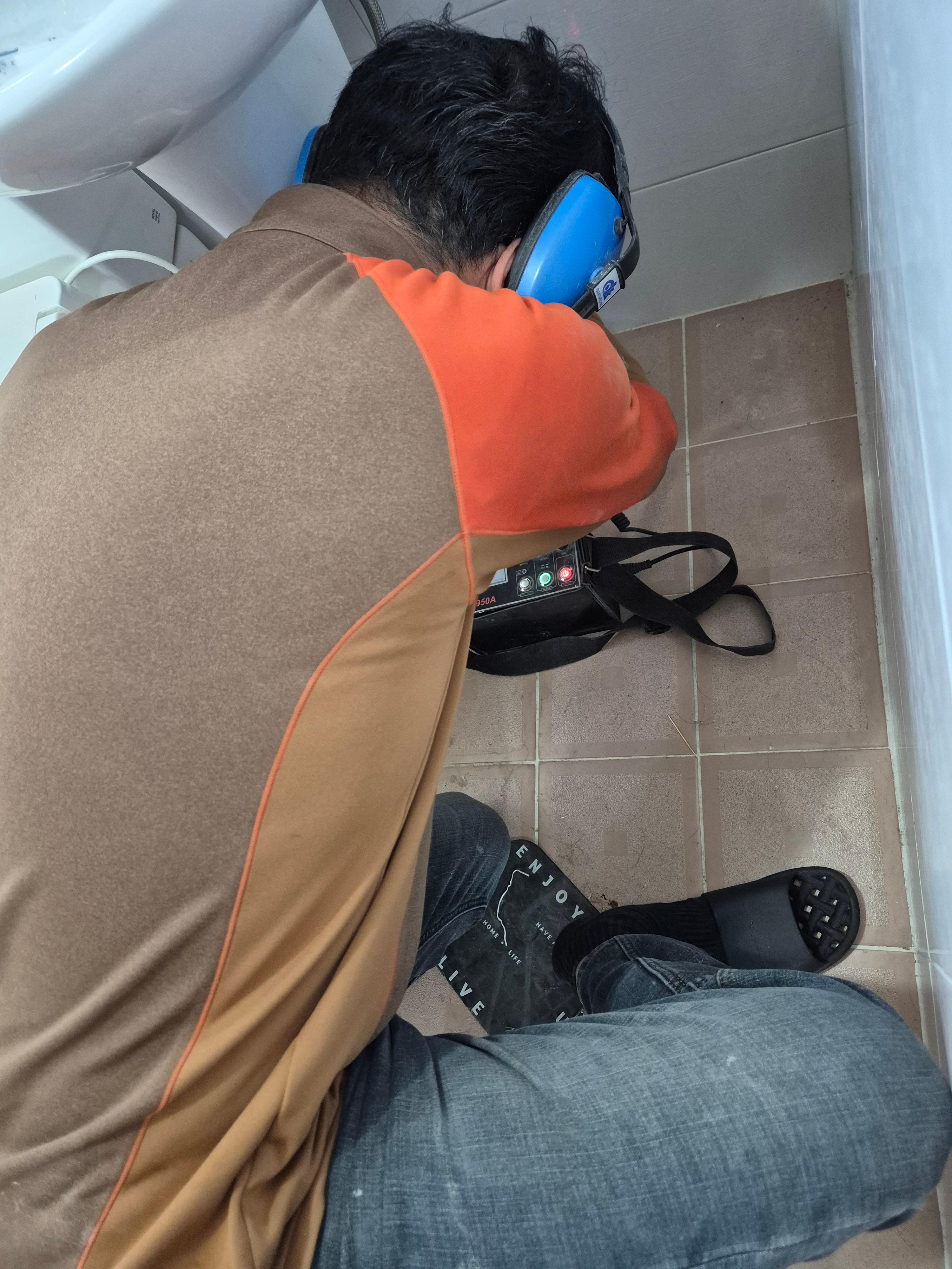 우선 청음식 누수탐지 장비로 탐지를 시작했습니다.